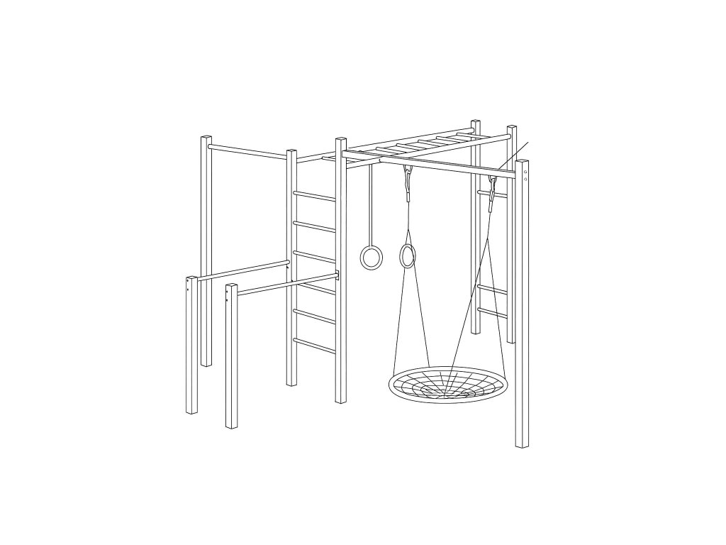 Houpačka a kruhy jsou také součástí sestavy.